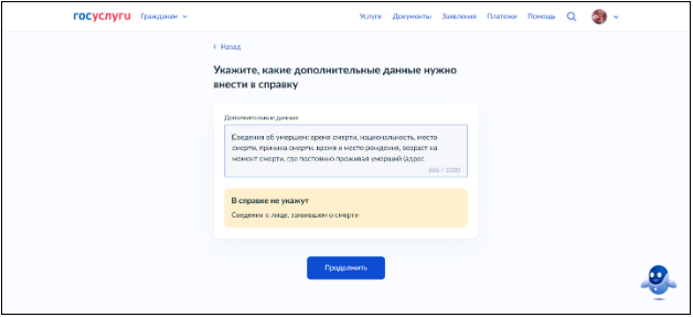 Дойдя до пункта «Дополнительные сведения», укажите, какие именно иные сведения Вы хотите получить: