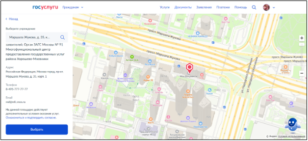 Выберете ближайшее к Вам отделение МФЦ, где удобно будет получить документ, а также дату и время получения.