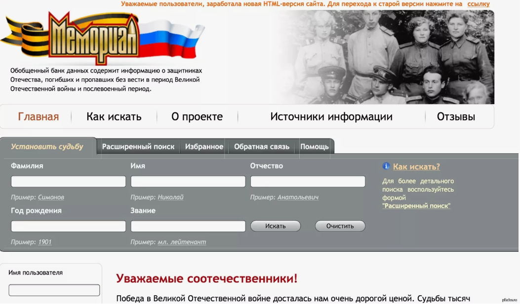 Книга подвига https://knigapodviga.ru/ - Участниками проекта стали ребята из разных городов и стран. Страница за страницей они собирали Книгу Памяти, в которой рассказали о героях войны. О тех, чьи имена не столь известны, о ком не написано книг, кому не воздвигли памятников, но тех, память о которых хранится в их семьях.Сейчас в нашей общей Книге Памяти размещено 4350 рассказов о героях. Каждый рассказ – это чья-то жизнь и подвиг. Более четырех тысяч авторов из России, Республики Казахстан, Республики Молдова и Украины поделились своими семейными историями о солдатах победителях.
