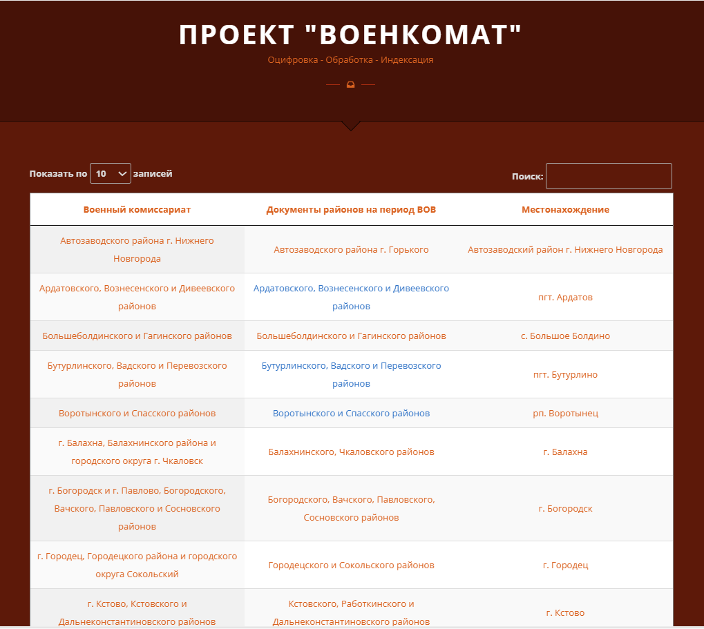 Более трети всех документов районных военных комиссариатов выложены на сайт проекта.
